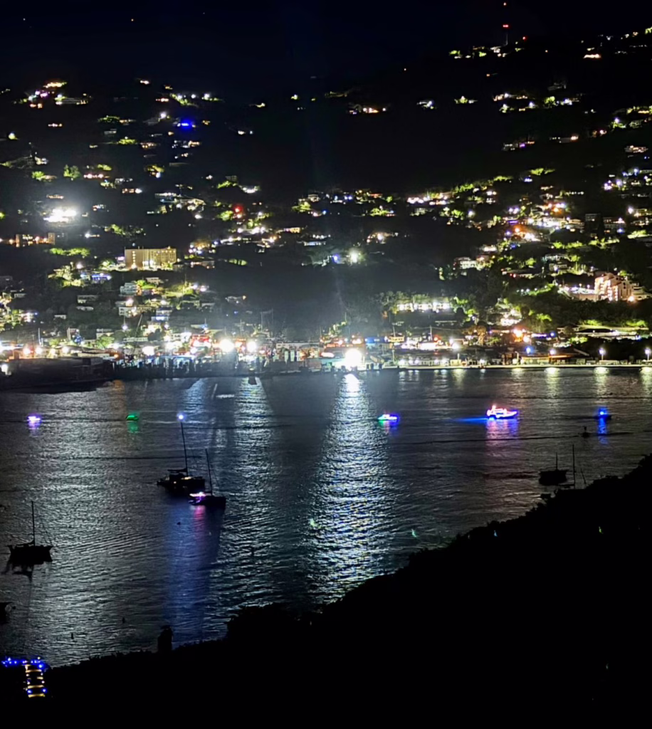Doug and Amy over at Slow Mocean threw their second annual Water Island, USVI Anniversary Party on the 12th, celebrating the 29th year since WI went from federal to territorial governance as the Fourth Virgin in 1996. Slow Mocean conveniently overlooked the lighted boat parade taking place in the harbor below.
